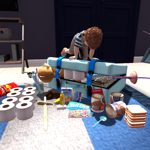 I decided to look behind the big stack of boxes that no one was digging through yet. Here I found a boomerang (awesome!!!) and a crossbow (No frckin way!!) I stash them in my bookbag quickly so no one can claim them for themselves. A kid has to be prepared ya know! I'm not leaving anything to JUST the adults. Orphans have spunk, that's how we survive day to day.